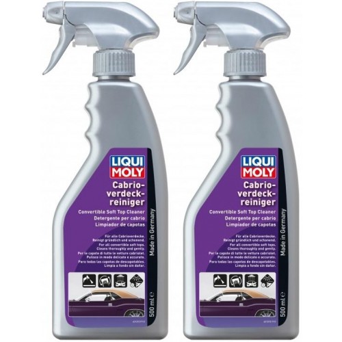 Cabrio-Verdeckreiniger von Liqui Moly 500ml ist für die Reinigung aller Cabrio-Verdecke geeignet. Reinigt gründlich und schonend. Cabrioverdeckreiniger auf das vorgenässte Verdeck aufsprühen. Schnelle und gründliche Reinigung auch von hartnäckigen Verschmutzungen. Greift Lacke nicht an. Optimal auf Stoff- und Kunststoff-Cabrio-Verdecken anwendbar.